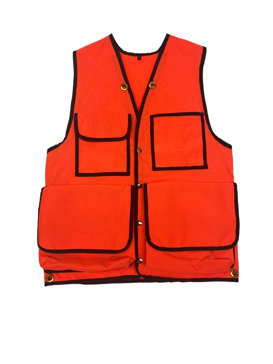 Resistant and light. Red-orange nylon weave. Compartment with 2 snap positions. Large zippered compartment Notebook pocket. Loop for compass or clinometer. Velcro pocket. Wide pocket for spray paint cans or velcro notepads.
